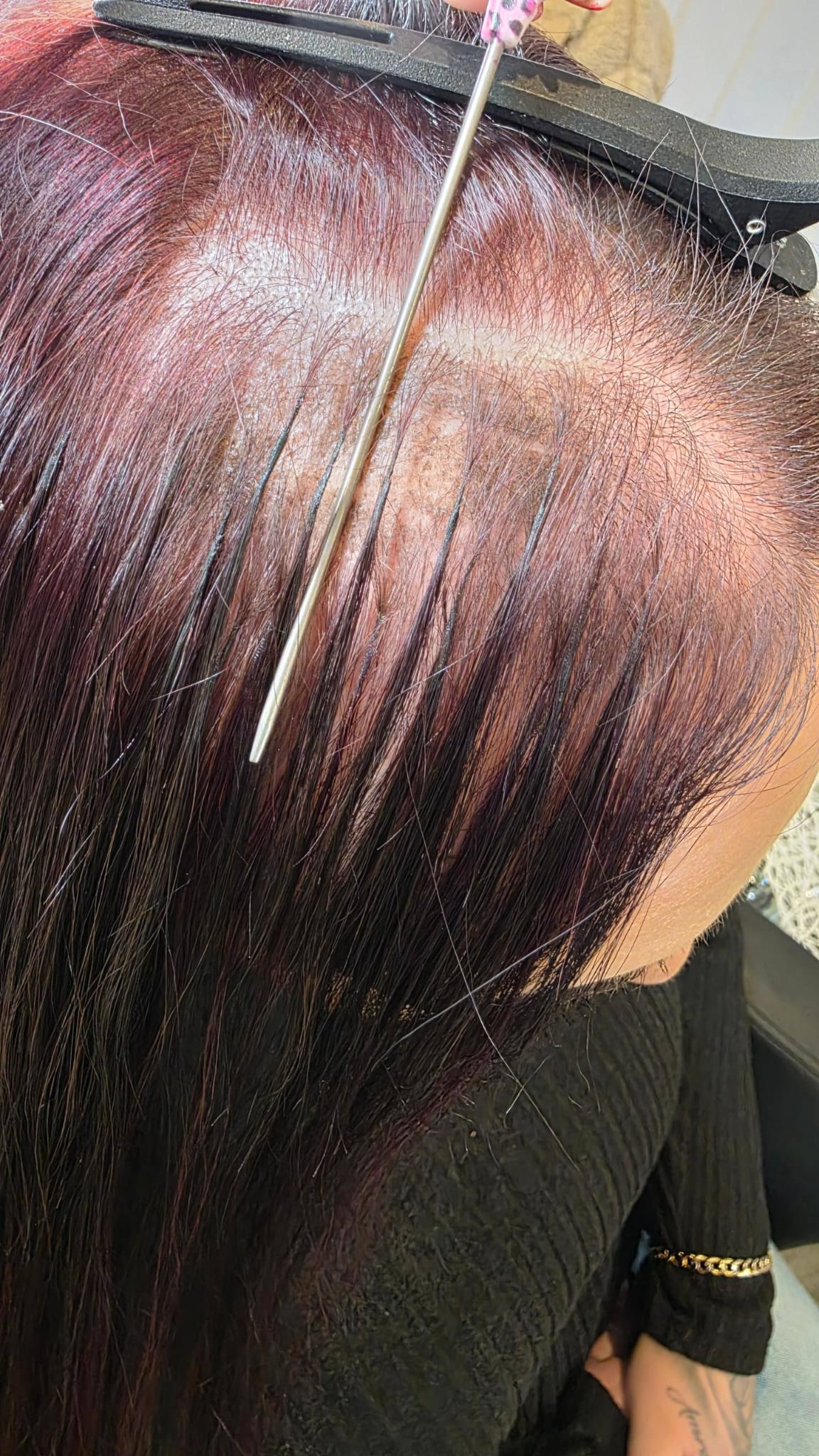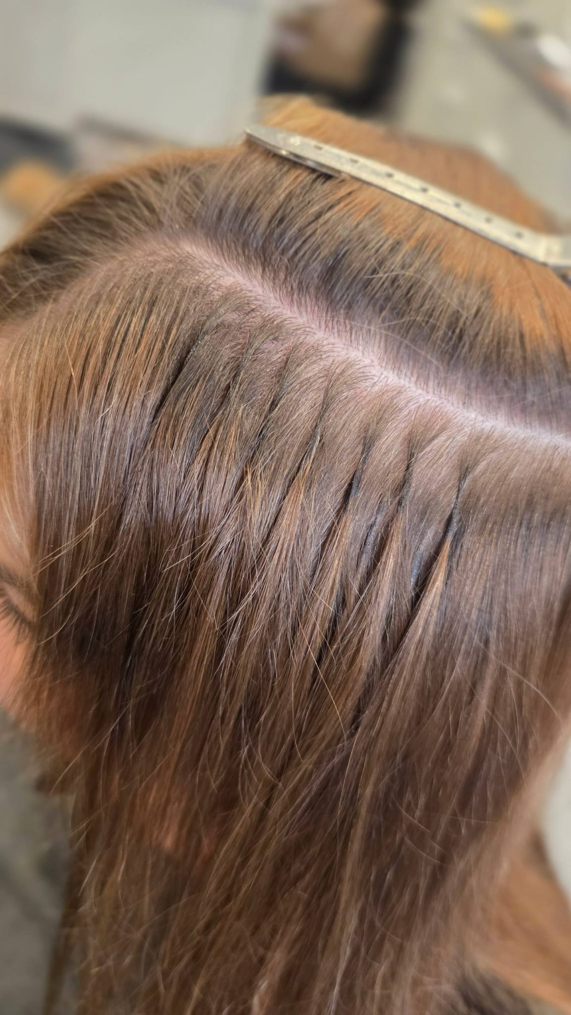 Keratin bonding permanently connects individual extension strands to your own hair.