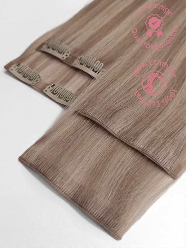 Descubra nuestras extensiones Genius de clip sin costuras: la elección perfecta para cualquiera que desee un cabello natural y voluminoso de primera calidad. Gracias a su procesamiento sin costuras, las extensiones se funden de forma casi invisible con su propio cabello y le ofrecen una sensación de lujo. A diferencia de los productos convencionales del mercado, le ofrecemos la misma calidad excepcional que utilizamos en nuestro salón: sin concesiones, de alta calidad y de larga duración.